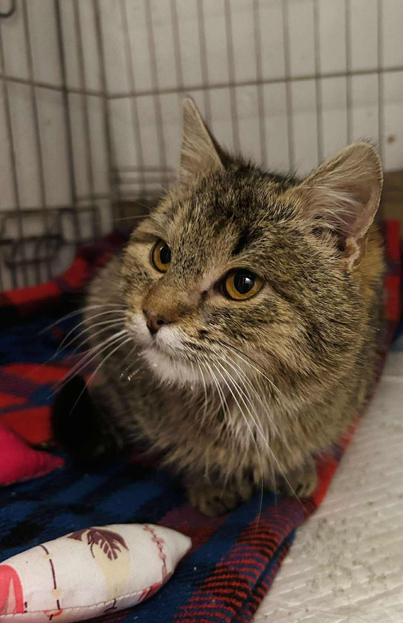 Jemiołka trafiła do nas w Pierwszy Dzień Świąt Bożego Narodzenia. Dowiedziałyśmy się o niej od wojskowych, którzy zgłosili chorego kota przebywającego na terenie jednostki wojskowej. Jemiołka leżała na gołej ziemi, na mrozie, ranna i z kocim katarem. W Drugi Dzień Świąt Jemiołka trafiła do weterynarza. Okazało się, że to młoda, niespełna roczna koteczka. Jemiołka miała mocno zapchane drogi oddechowe, kaszlała, nie mogła swobodnie oddychać, miała wyciek z oczu i noska. Od razu otrzymała leki. Niestety po dokładnym obejrzeniu Jemiołki, okazało się, że wirusówka to nie jej jedyny problem. Z tyłu ciała Jemiołka miała duże rany - najprawdopodobniej została pogryziona przez inne zwierzę. Rany wymagały szycia na cito. Przez pierwsze tygodnie Jemiołka musiała być dokarmiana - padło podejrzenie wrzodów przełyku. Dodatkowo Jemiołka zmaga się z anemią. Najprawdopodobniej, na skutek przebytego urazu, Jemiołka nie słyszy. Mimo stanu zdrowia Jemiołka jest cudowną, grzeczną kotką, która kocha człowieka 🙂 Pięknie odnajduje się w domu. Jest bardzo łagodna i przyjazna do innych kotów. Jemiołka jest w trakcie leczenia. Została odrobaczona i odpchlona oraz zaszczepiona. Zleciliśmy także testy felv fiv, które wyszły ujemne. Przed nią jeszcze kastracja.